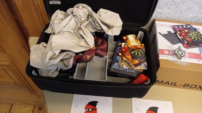 Den Preispool haben unsere Freunde von Taschengelddieb und Feldherr ordentlich aufgestockt, so dass für jeden Teilnehmer etwas erspielt werden konnte. Lieben Dank auch hier an Dennis – entsandt im Auftrag von unseren nachbarn dem White Rabbit in Essen – , der noch so einiges an Promomaterial als Preise mitgebracht hat.