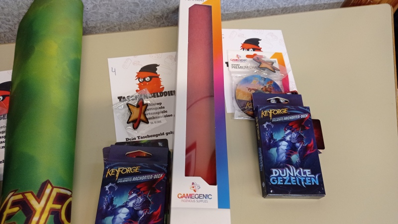 Den Preispool haben unsere Freunde von Taschengelddieb und Feldherr ordentlich aufgestockt, so dass für jeden Teilnehmer etwas erspielt werden konnte. Lieben Dank auch hier an Dennis – entsandt im Auftrag von unseren nachbarn dem White Rabbit in Essen – , der noch so einiges an Promomaterial als Preise mitgebracht hat.
